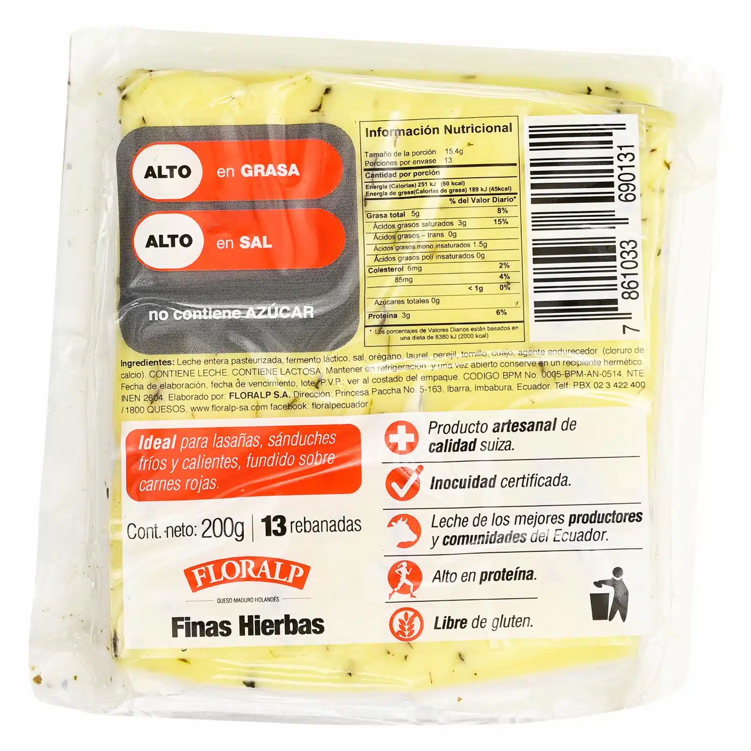 Queso Holandés Finas Hierbas FLORALP 200 G – FLORALP. Disponible en nuestros locales. Precio y stock pueden variar según la tienda.