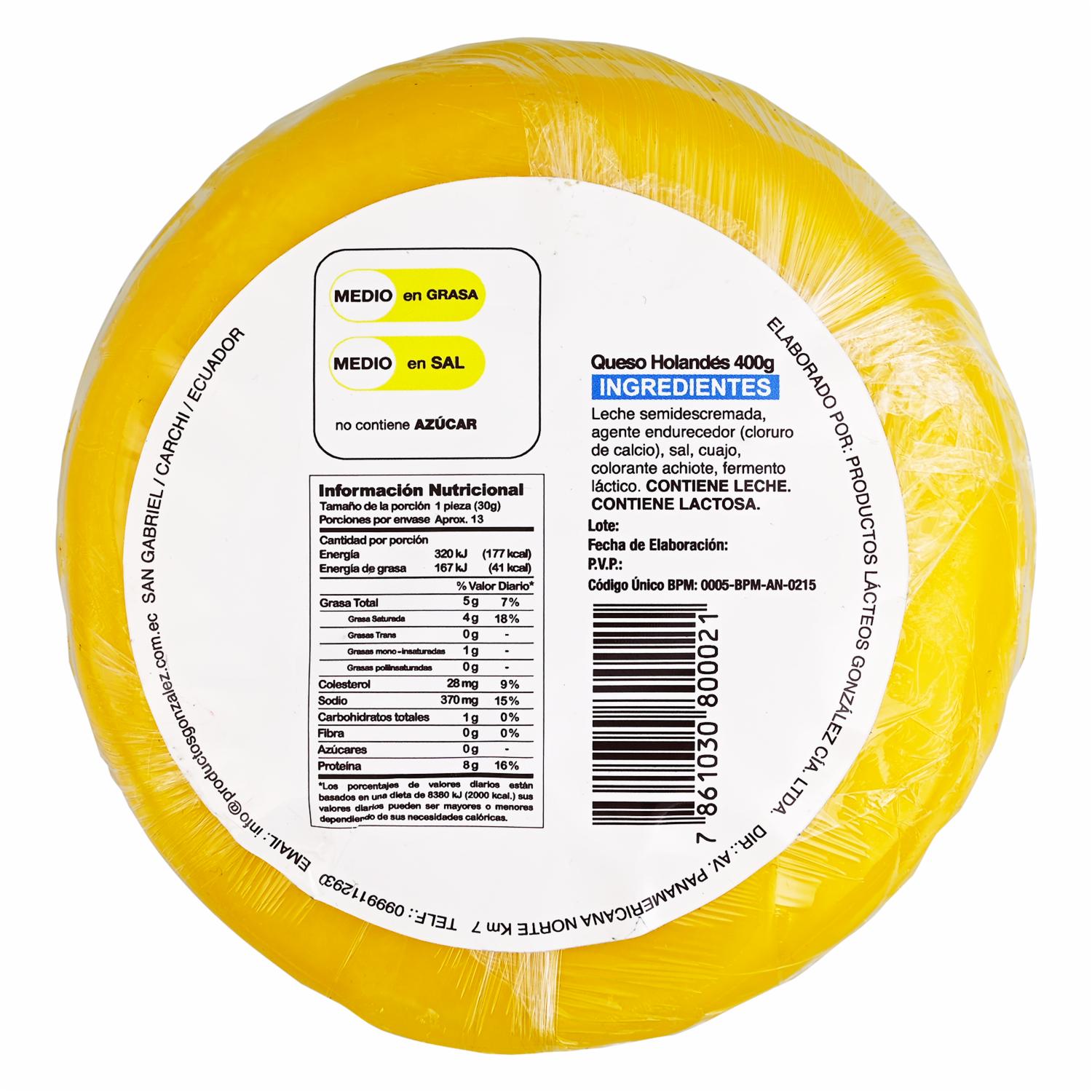 Queso Holandés GONZALEZ 400g – GONZALEZ. Disponible en nuestros locales. Precio y stock pueden variar según la tienda.