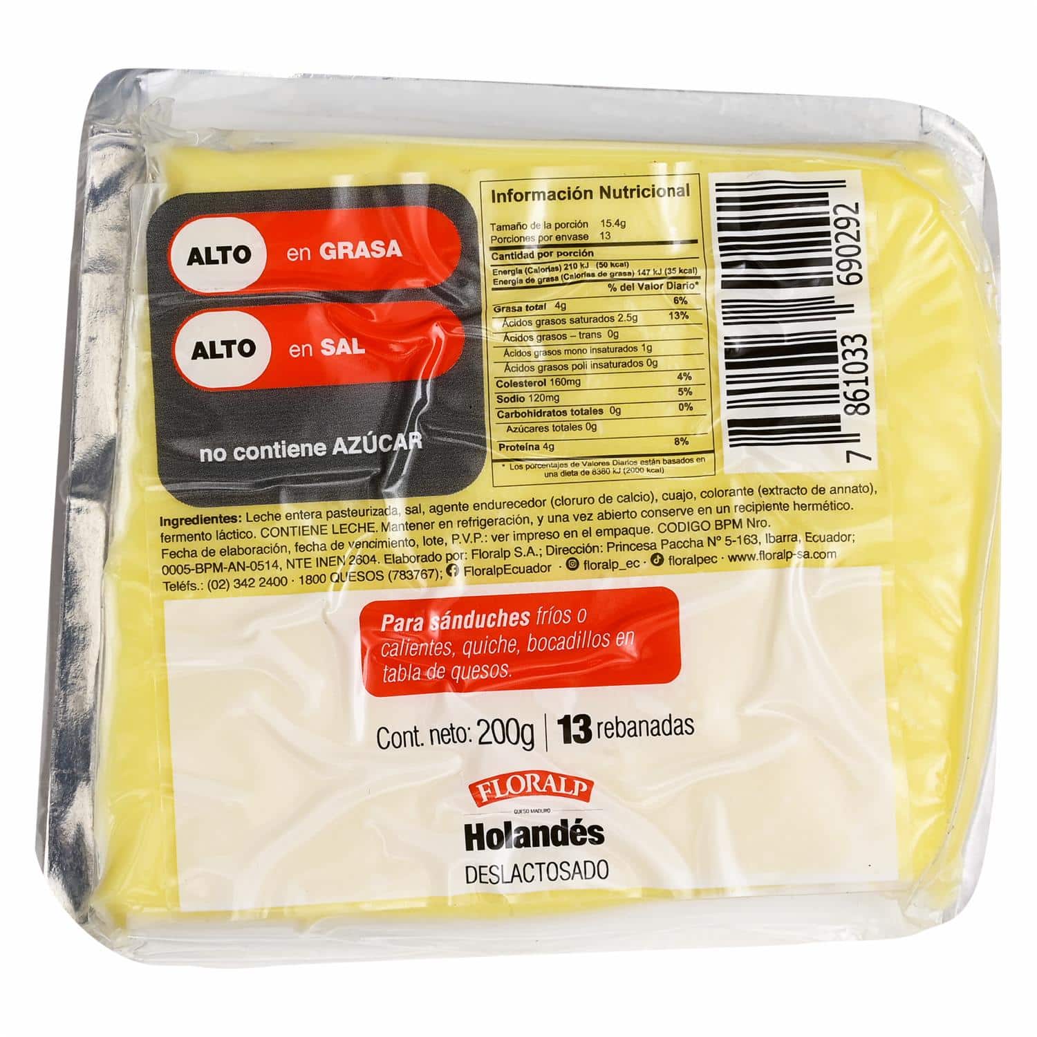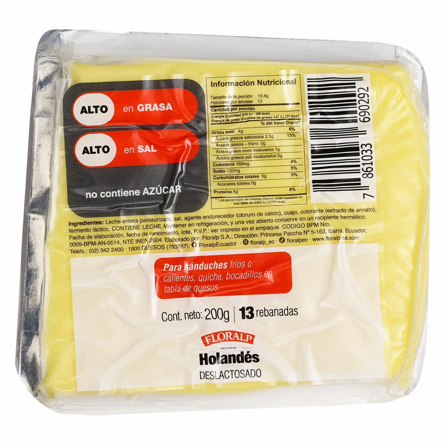 Queso Holandés Rebanado Deslactosado FLORALP 200 G – FLORALP. Disponible en nuestros locales. Precio y stock pueden variar según la tienda.