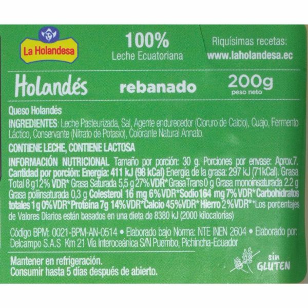 Queso Holandés Rebanado LA HOLANDESA 200 G