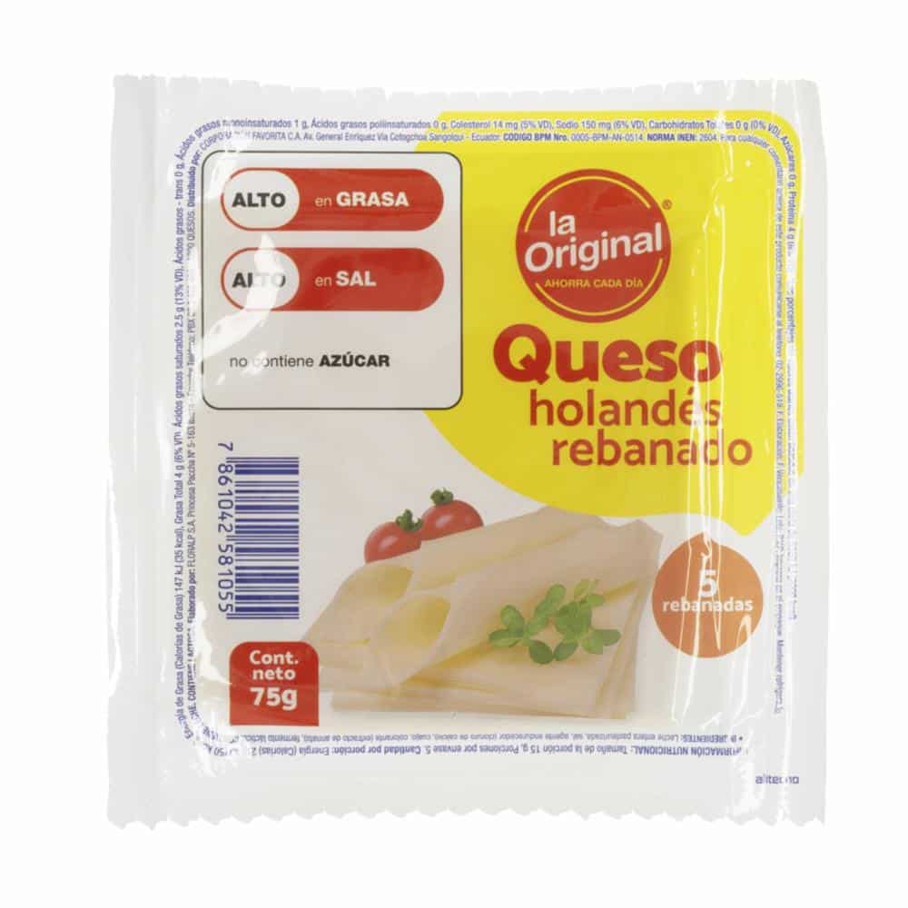 Queso Holandés Rebanado LA ORIGINAL 75 G – LA ORIGINAL. Disponible en nuestros locales. Precio y stock pueden variar según la tienda.