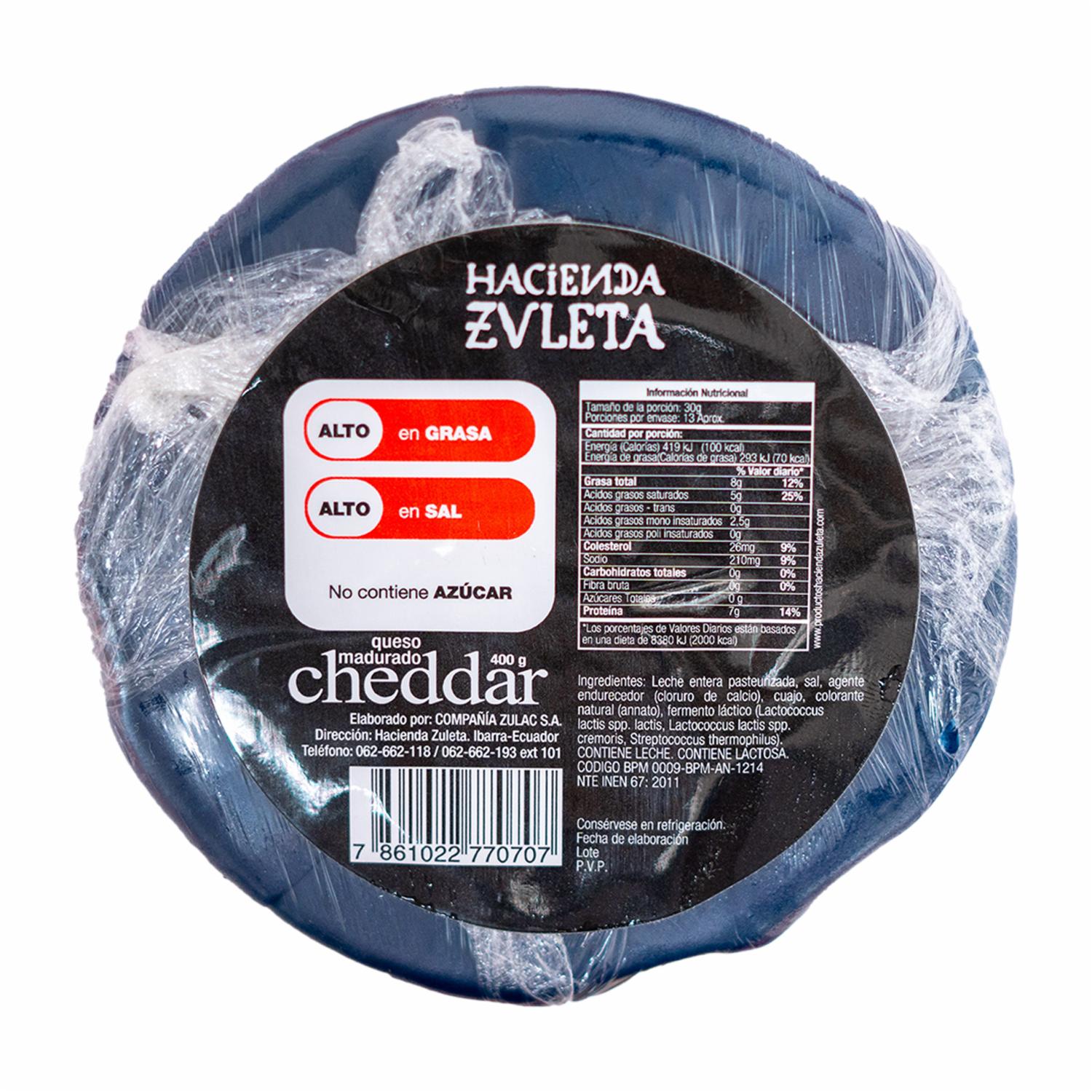 Queso Madurado Cheddar HACIENDA ZULETA 400 G