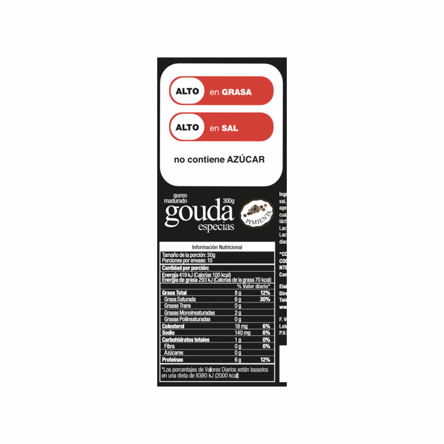 Queso Madurado Gouda Especies Con Pimienta HACIENDA ZULETA 300 G