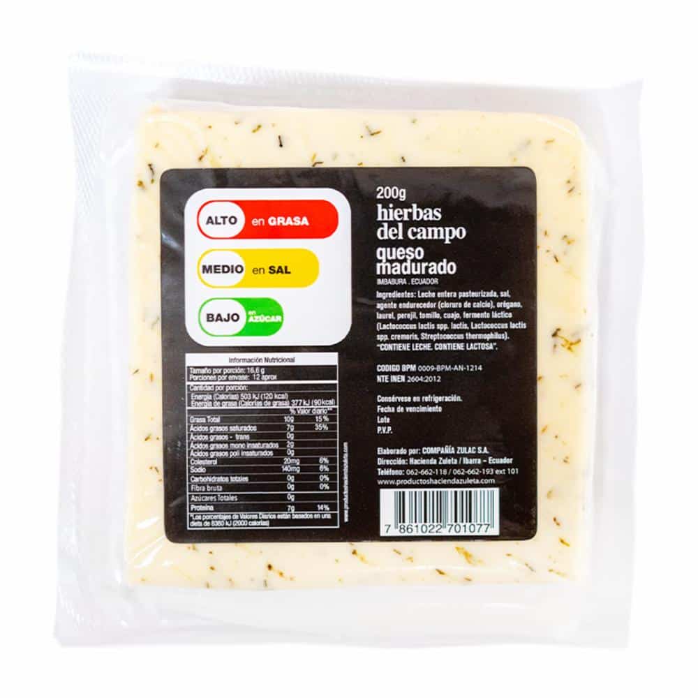 Queso Madurado Hierbas Del Campo HACIENDA ZULETA 12 Rebanadas 200 G