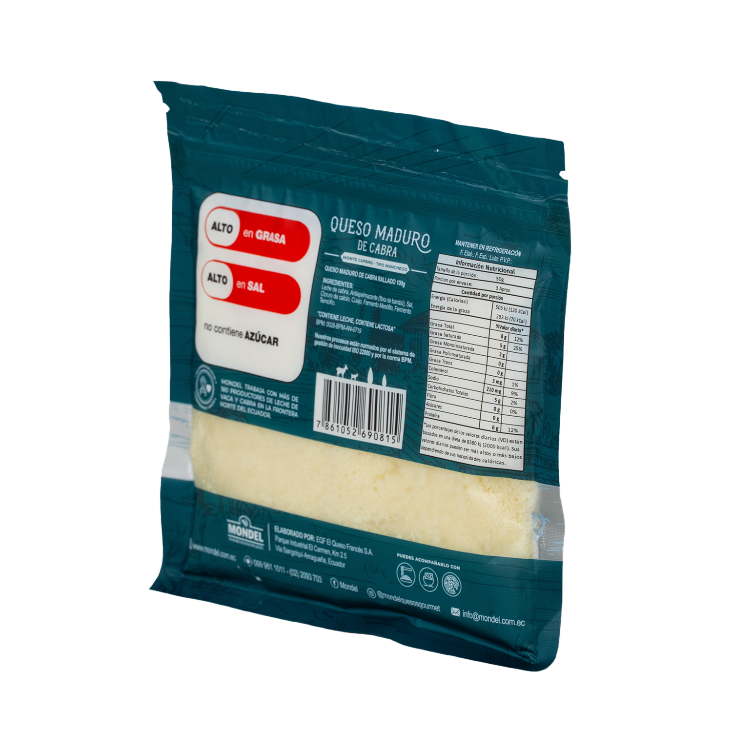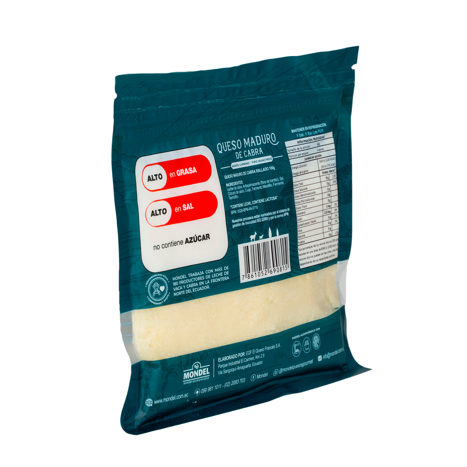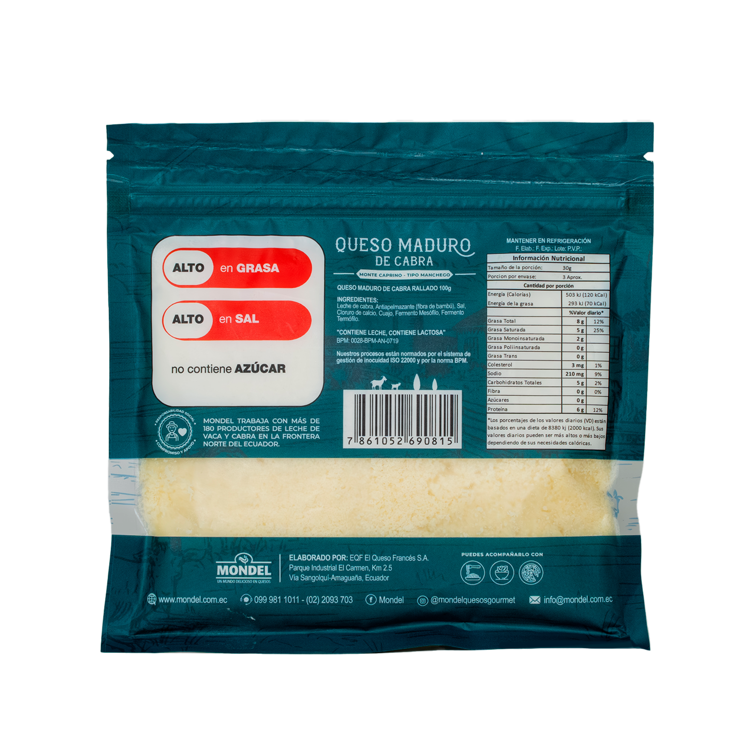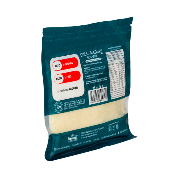 Queso maduro de leche de cabra rallado Perfecto para ensaladas y pizzas No contienen conservantes, saborizantes, ni endurecedores