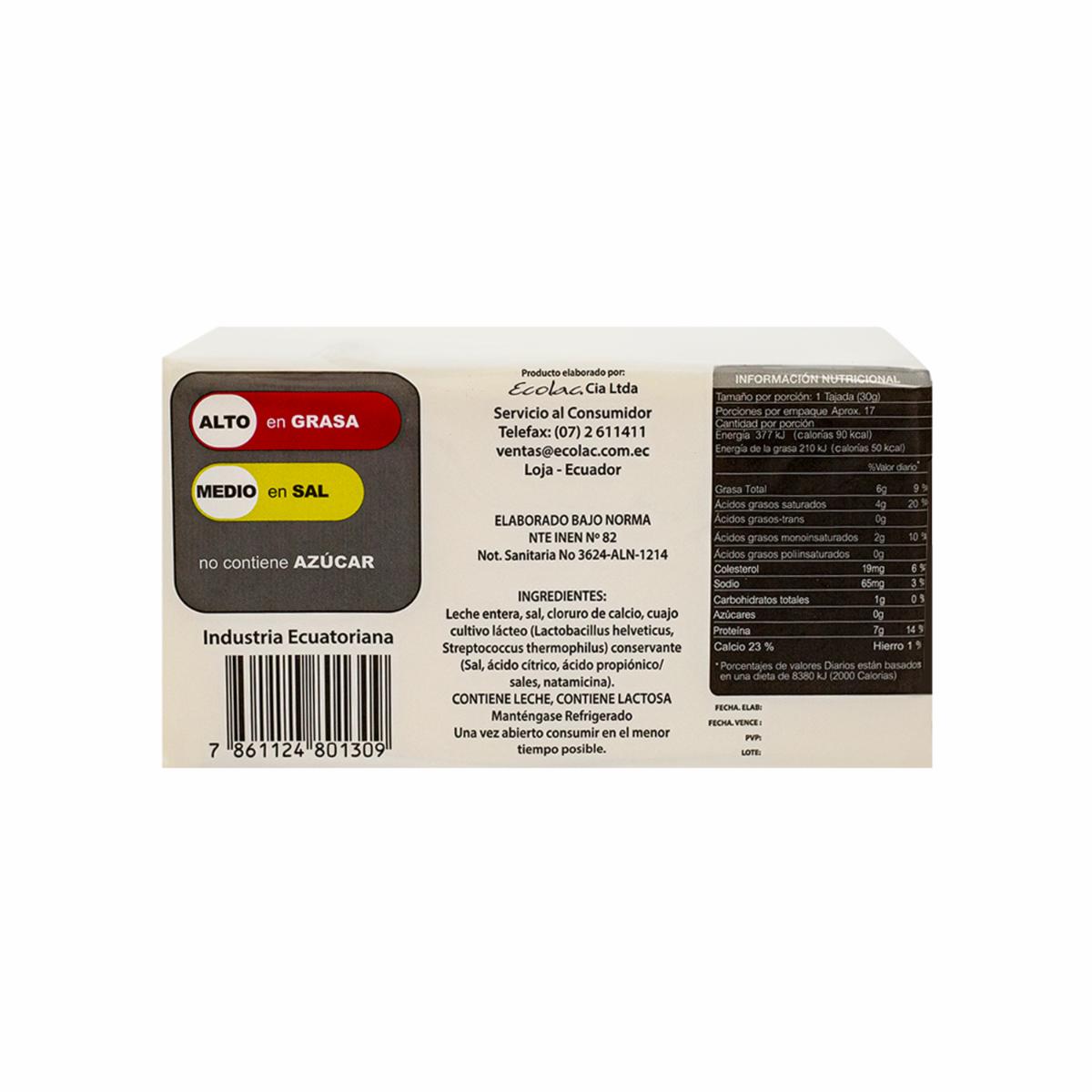 Queso Mozarella ECOLAC 500 G