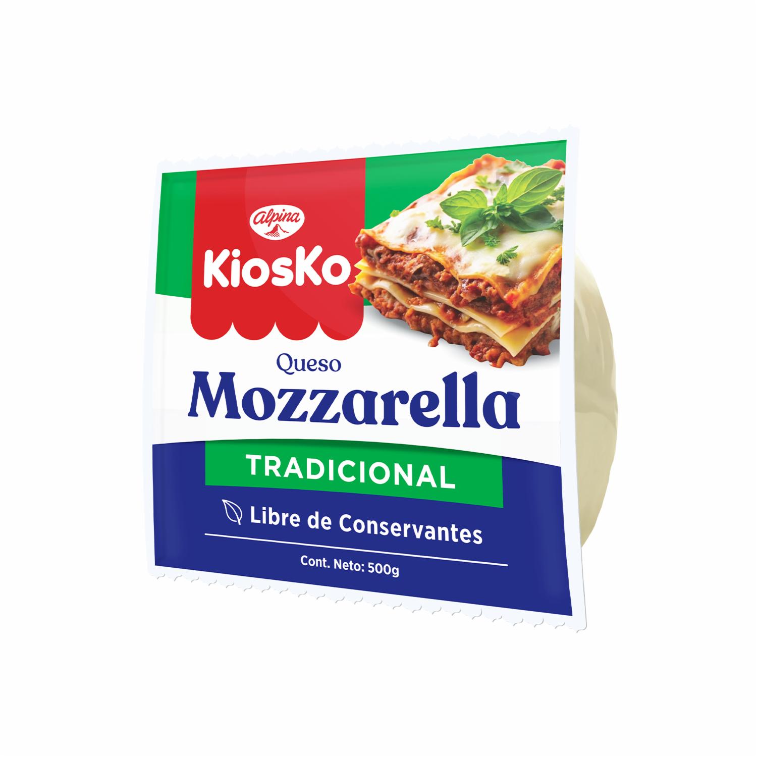- Queso Mozzarella Kiosko de Alpina: elaborado con leche fresca, textura suave y cremosa, elasticidad perfecta para pizzas, lasañas y sándwiches. Ideal para ensaladas y platos fríos. Marca número 1 en Ecuador que transforma tus comidas en delicias gourmet