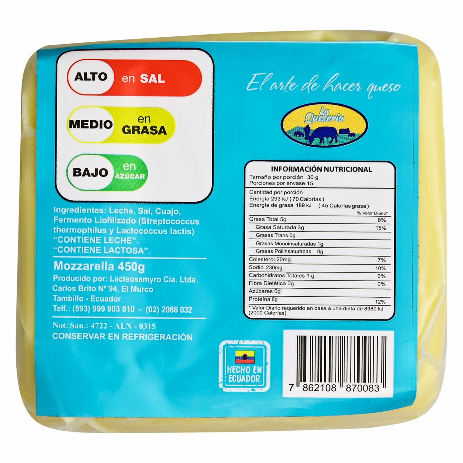 consultando preciosQueso Mozzarella LA QUESERÍA 450 G – LA QUESERIA. Disponible en nuestros locales. Precio y stock pueden variar según la tienda.