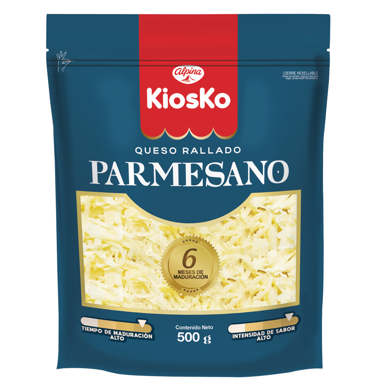 - Queso Parmesano Rallado KIOSKO 250 g. Producto lácteo, fuente de proteína y calcio, Maduración de 6 meses, sabor intenso