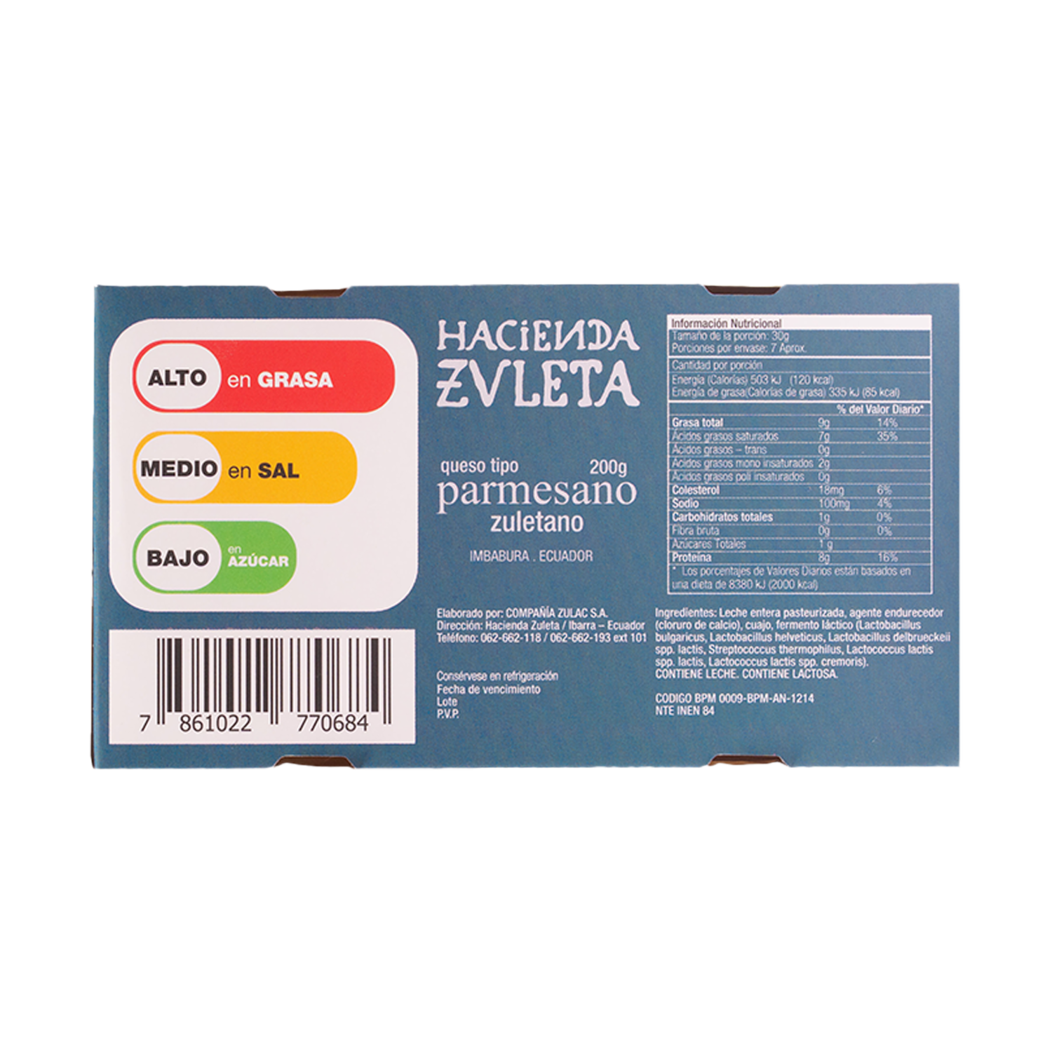 Nuestro Zuletano tipo Parmesano, es la muestra perfecta que la paciencia, constancia y espera tienen su recompensa. Madurado desde 12 a 36 meses en nuestras cámaras especiales, es un tesoro lleno de sabores increíbles que deleitan el paladar al momento de llegar al punto exacto de estar en tu mesa