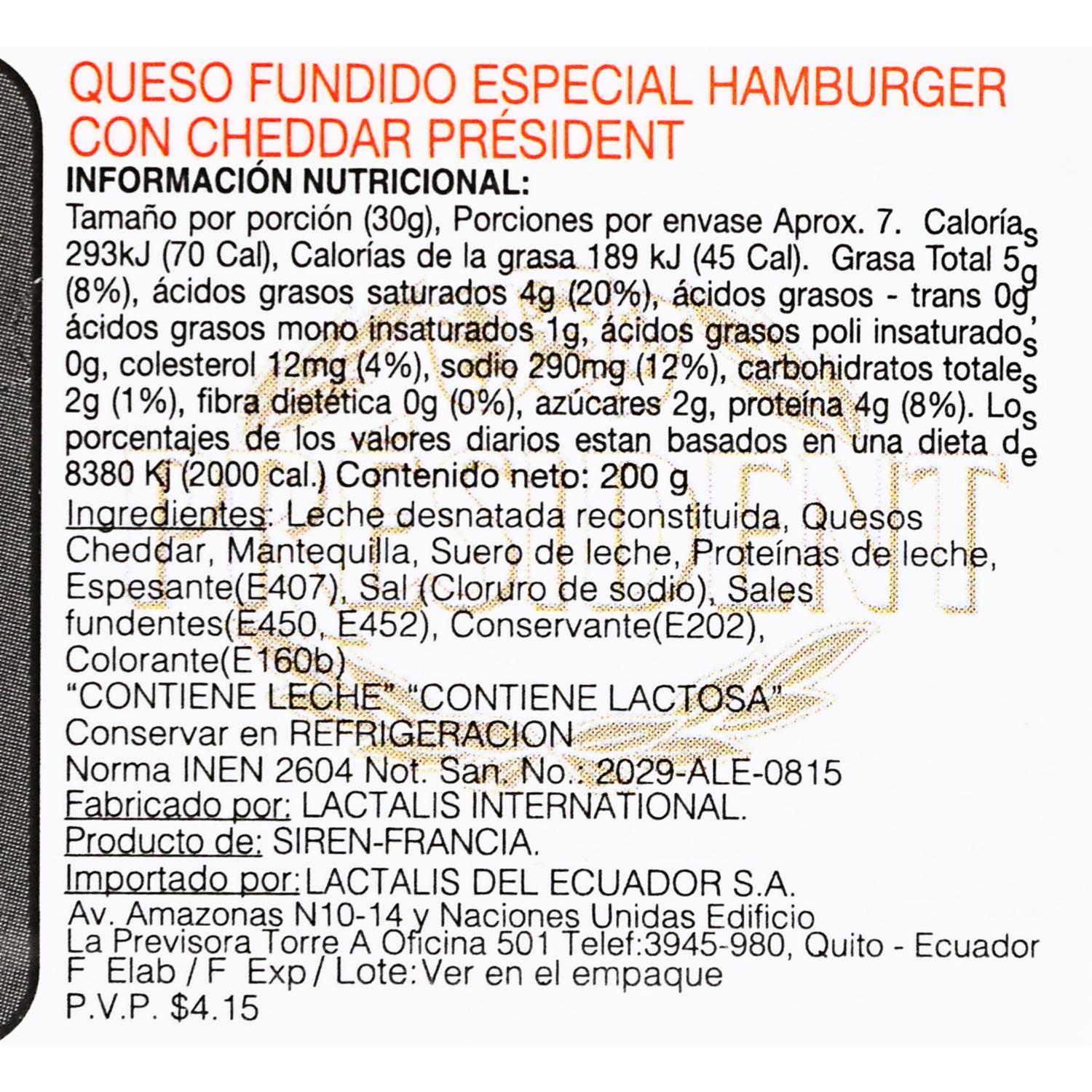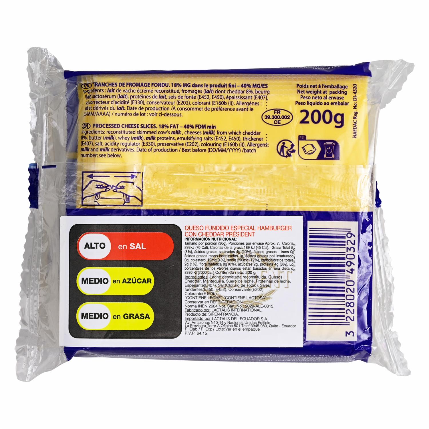 Queso Queso Cheddar PRÉSIDENT 200 G