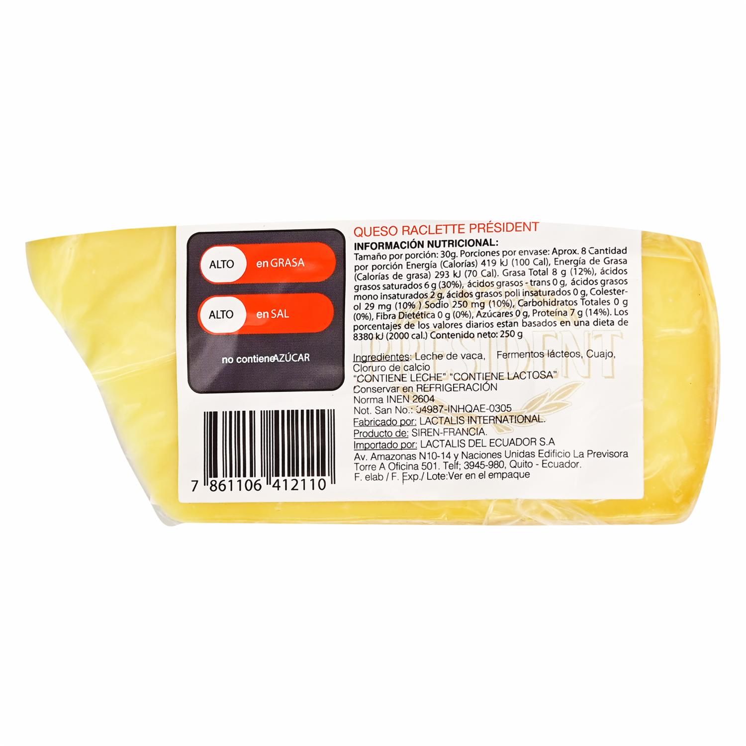 Queso Raclette PRÉSIDENT 250 G – PRESIDENT. Disponible en nuestros locales. Precio y stock pueden variar según la tienda.
