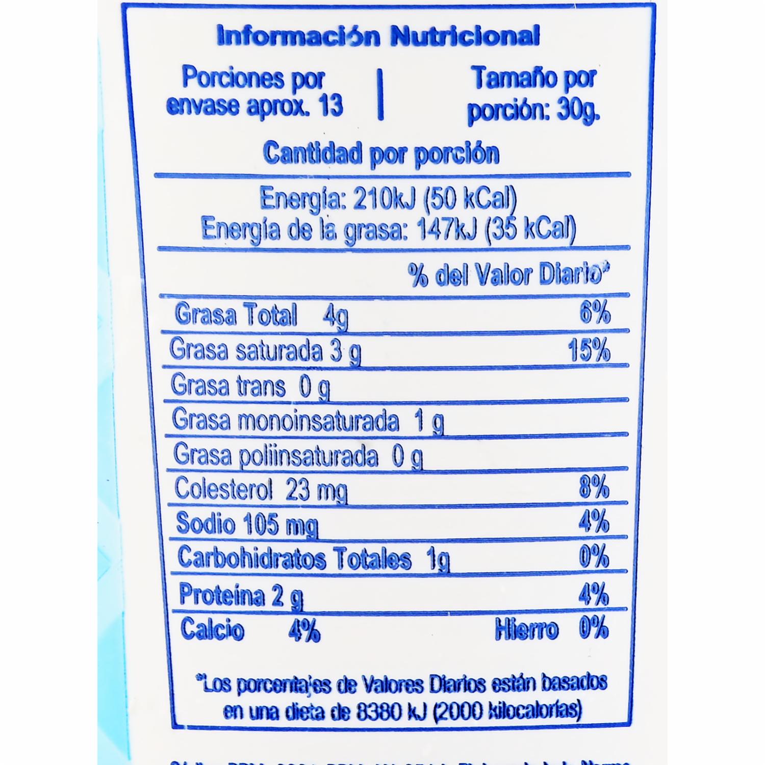 - Es un queso ideal para utilizar en bocaditos y postres. Es medio en sal y en grasa