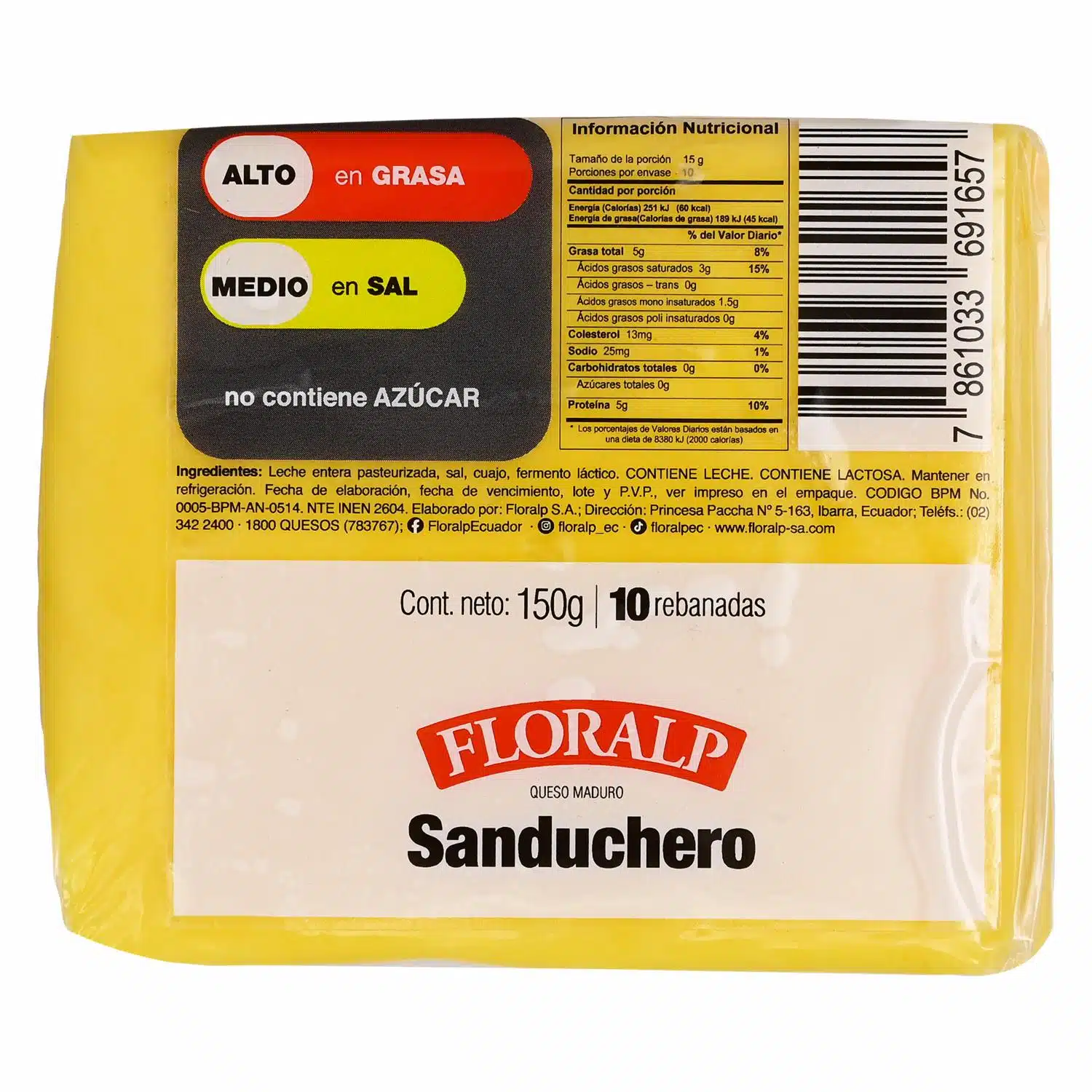 Queso Sanduchero Rebanado FLORALP 150 G – FLORALP. Disponible en nuestros locales. Precio y stock pueden variar según la tienda.
