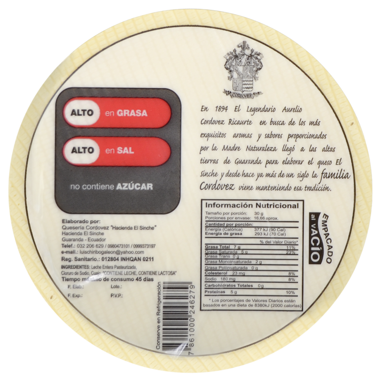 Queso Semi Maduro EL SINCHE 500 G – EL SINCHE. Disponible en nuestros locales. Precio y stock pueden variar según la tienda.