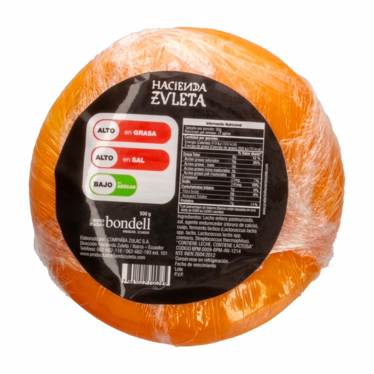Queso Semimaduro Bondell HACIENDA ZULETA 500 G