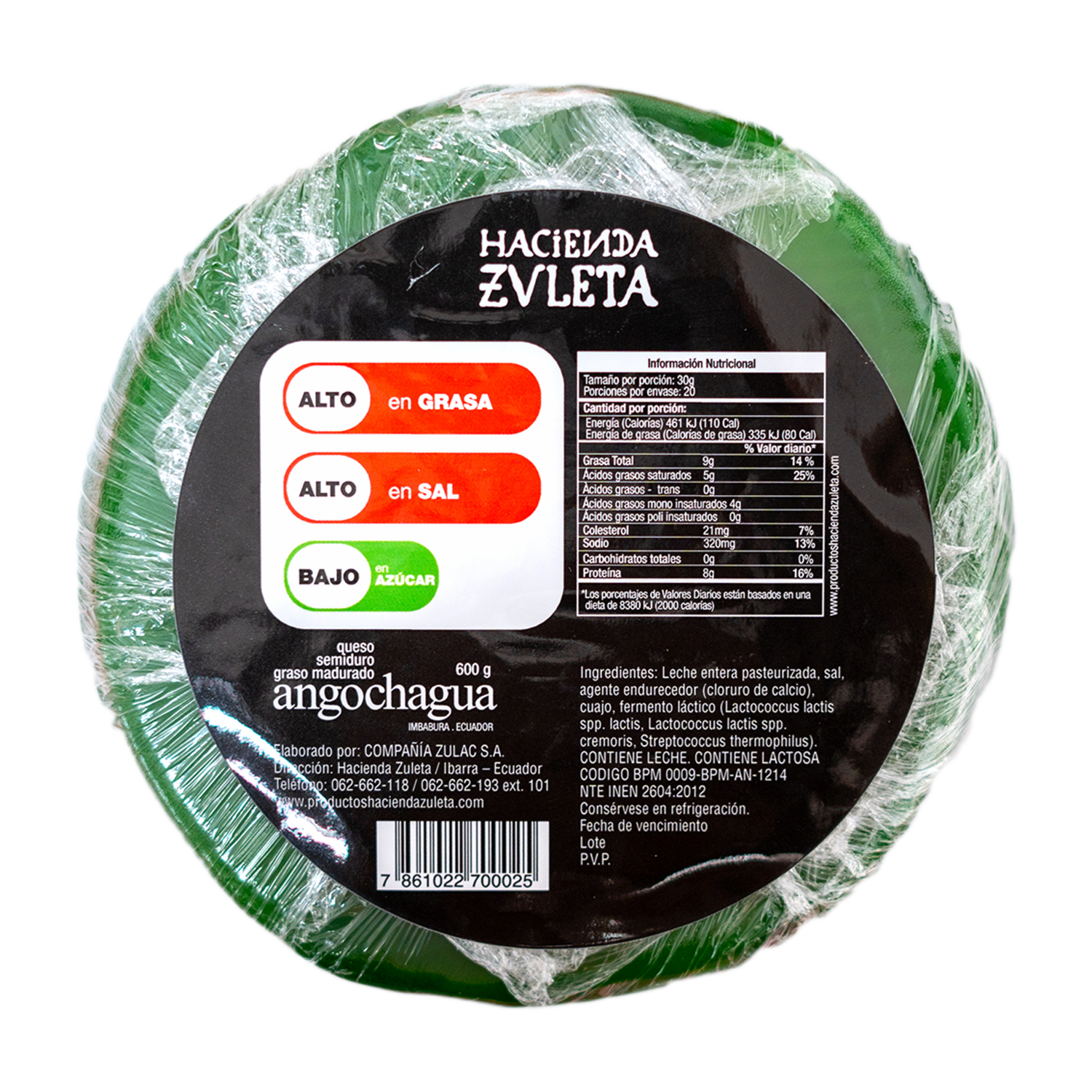 Queso Semimaduro Graso Angochagua HACIENDA ZULETA 600 G
