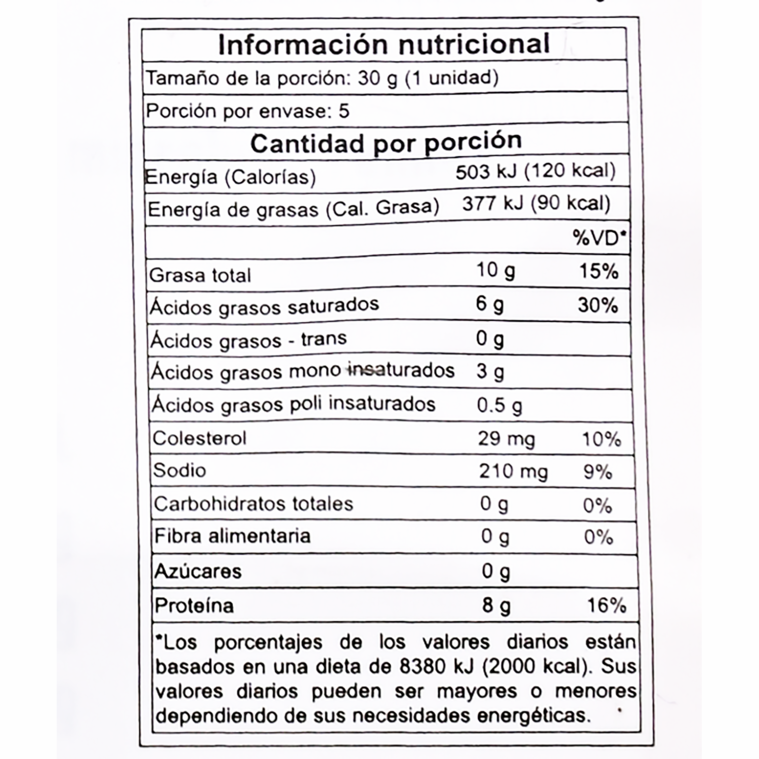 - - Tipo de queso: Cheddar