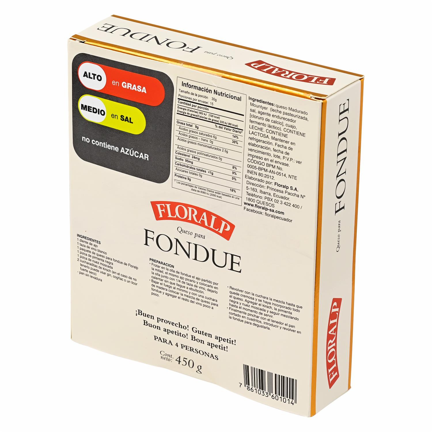 Quesos Mezcla Fondue FLORALP 450 G – FLORALP. Disponible en nuestros locales. Precio y stock pueden variar según la tienda.