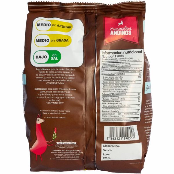 - Cereal con sabor a chocolate - Libre de leche y productos lácteos - Elaborado con cereales andinos ricos en nutrientes - Apto para personas con intolerancia a la lactosa - Práctico y fácil de almacenar