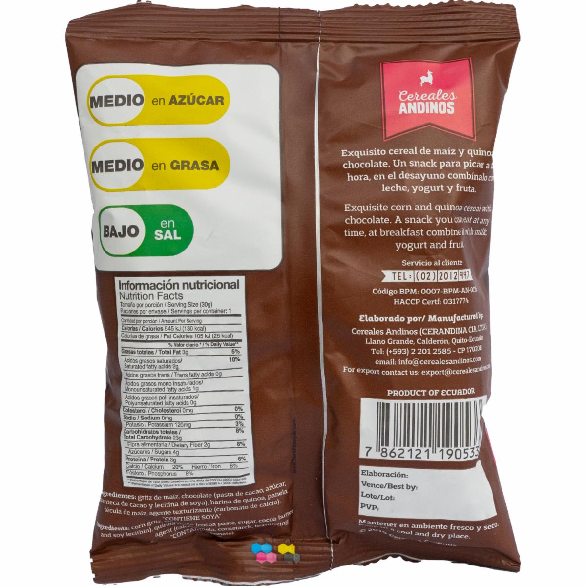 Quinoa Munch Cereal De Maíz Y Quinoa Con Chocolate Libre De Gluten CEREALES ANDINOS 30 G