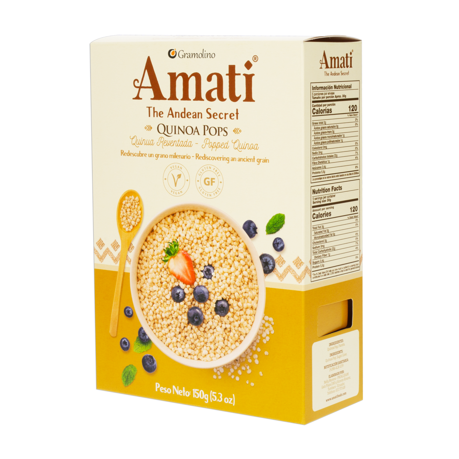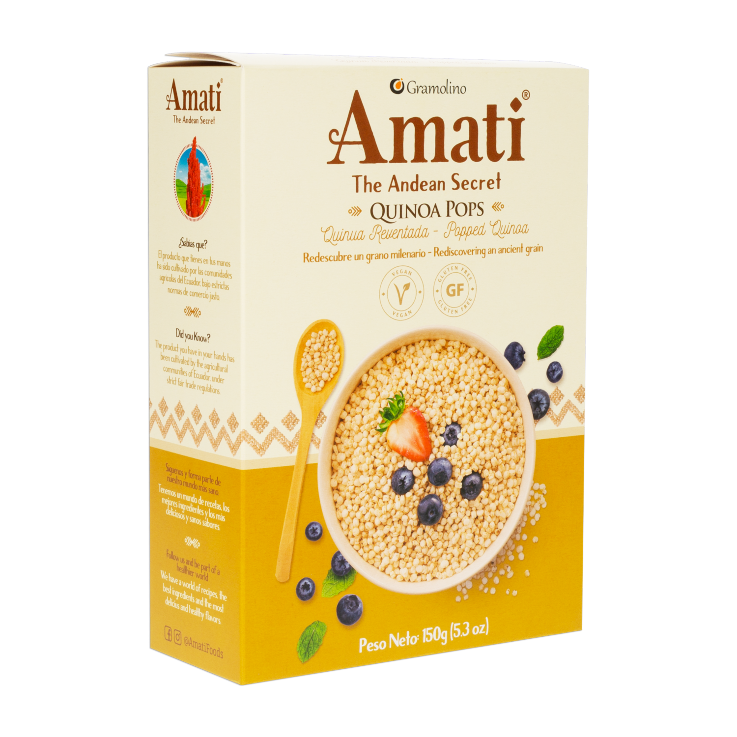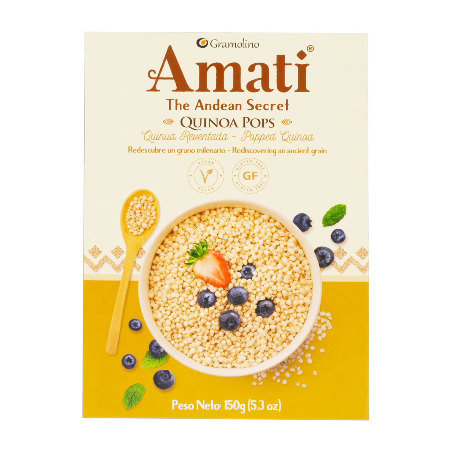 Quinoa Pops Con Panela Vegano Sin Gluten AMATI THE ANDEAN SECRET 150 G