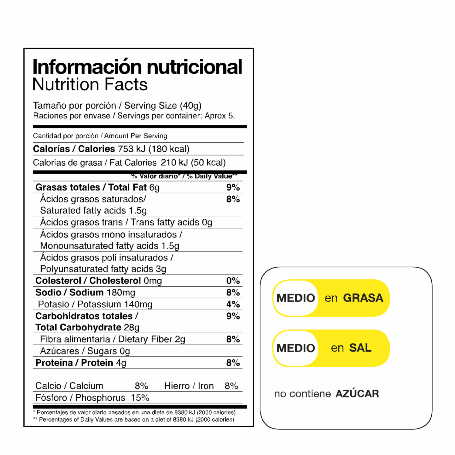 - Libre de gluten y sin conservantes ni colorantes artificiales