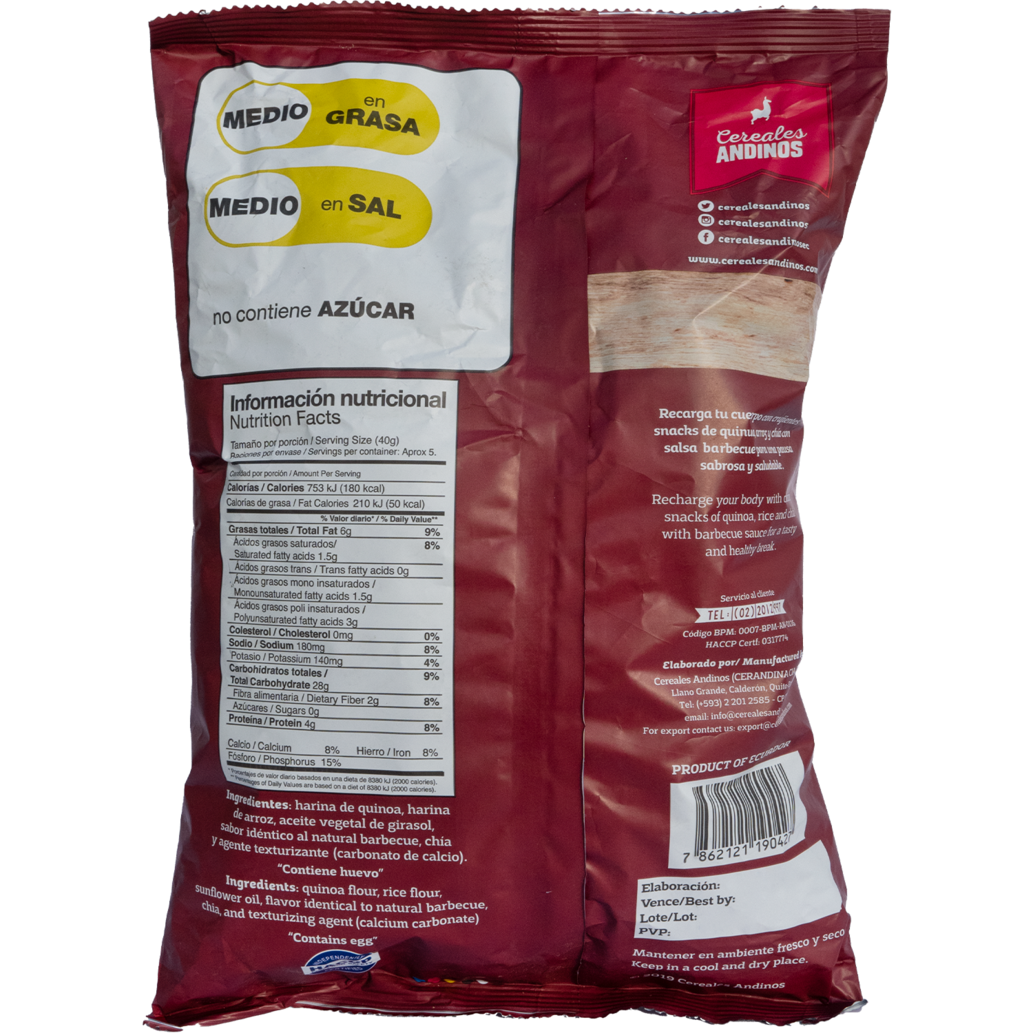 Quinoa Snack Barbecue Con Arroz + Chía Libre De Gluten CEREALES ANDINOS 184 G