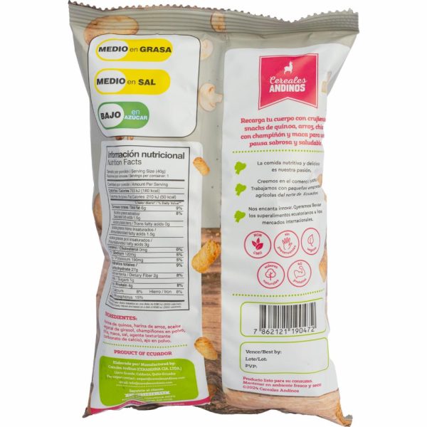Quinoa Snack Champiñones Con Arroz, Chía + Maca Libre De Gluten CEREALES ANDINOS 40 G