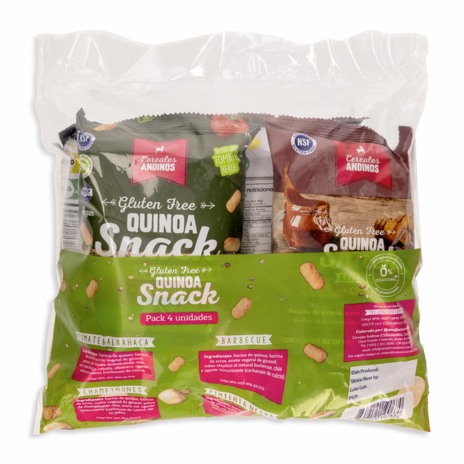 Quinoa Snack Con Arroz + Chía Sabores Surtidos Libre De Gluten CEREALES ANDINOS Four Pack X 40 G
