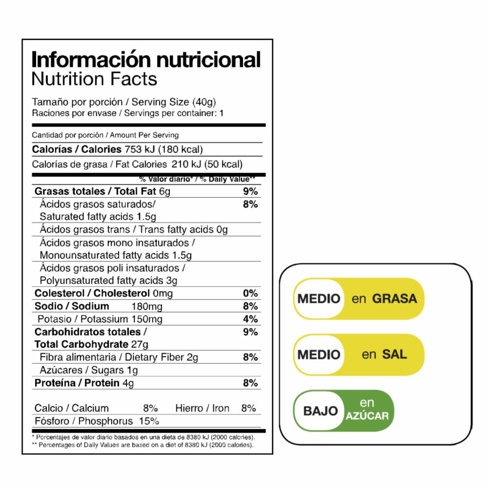 - Snacks de quinoa con sabor a chía y pimienta negra - Elaborados con cereales andinos, específicamente quinoa - Fuente de proteínas y fibra - Libre de gluten y bajo en grasas saturadas - Producto apto para vegetarianos y veganos - Perfecto para un snack saludable y delicioso