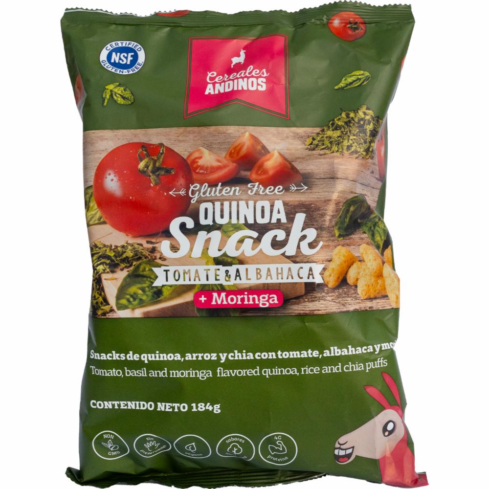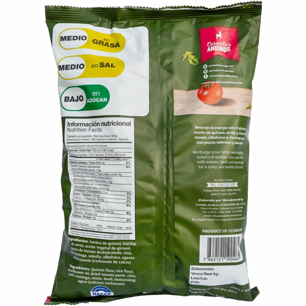 Quinoa Snack Tomate & Albahaca Con Arroz, Chía + Moringa Libre De Gluten CEREALES ANDINOS 184 G