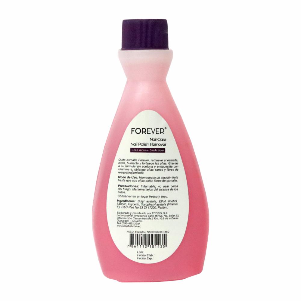 • Forever Quitaesmalte con lanolina elimina eficazmente el esmalte mientras nutre y suaviza uñas y cutículas
