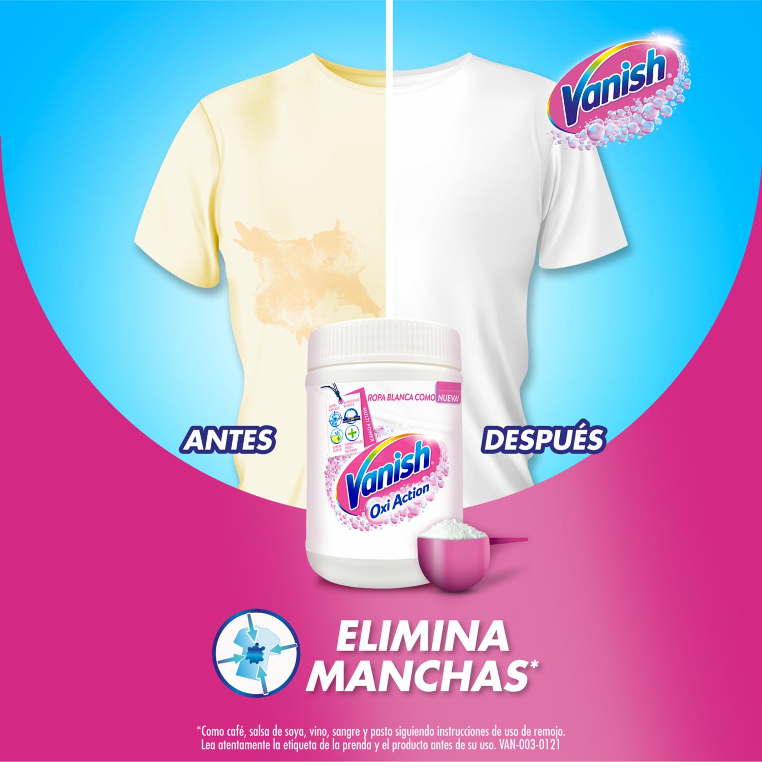 Ahora Vanish Quitamanchas Trae Cuatro Beneficios: Remueve Hasta Las Manchas Más Difíciles, Previene La Transferencia De Color, Elimina Los Malos Olores Y Mata El 99.9% De Bacterias De Tus Prendas. Lea Atentamente El Rótulo / Etiqueta De Las Prendas Y El Producto Antes De Su Uso