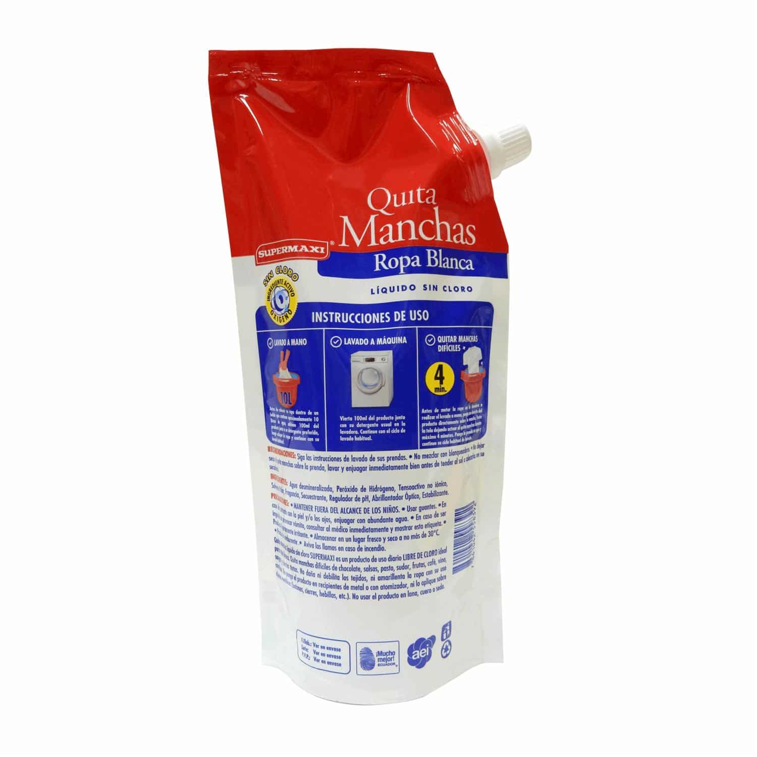 Quita Manchas Líquido Sin Cloro Para Ropa Blanca SUPERMAXI 450 Ml