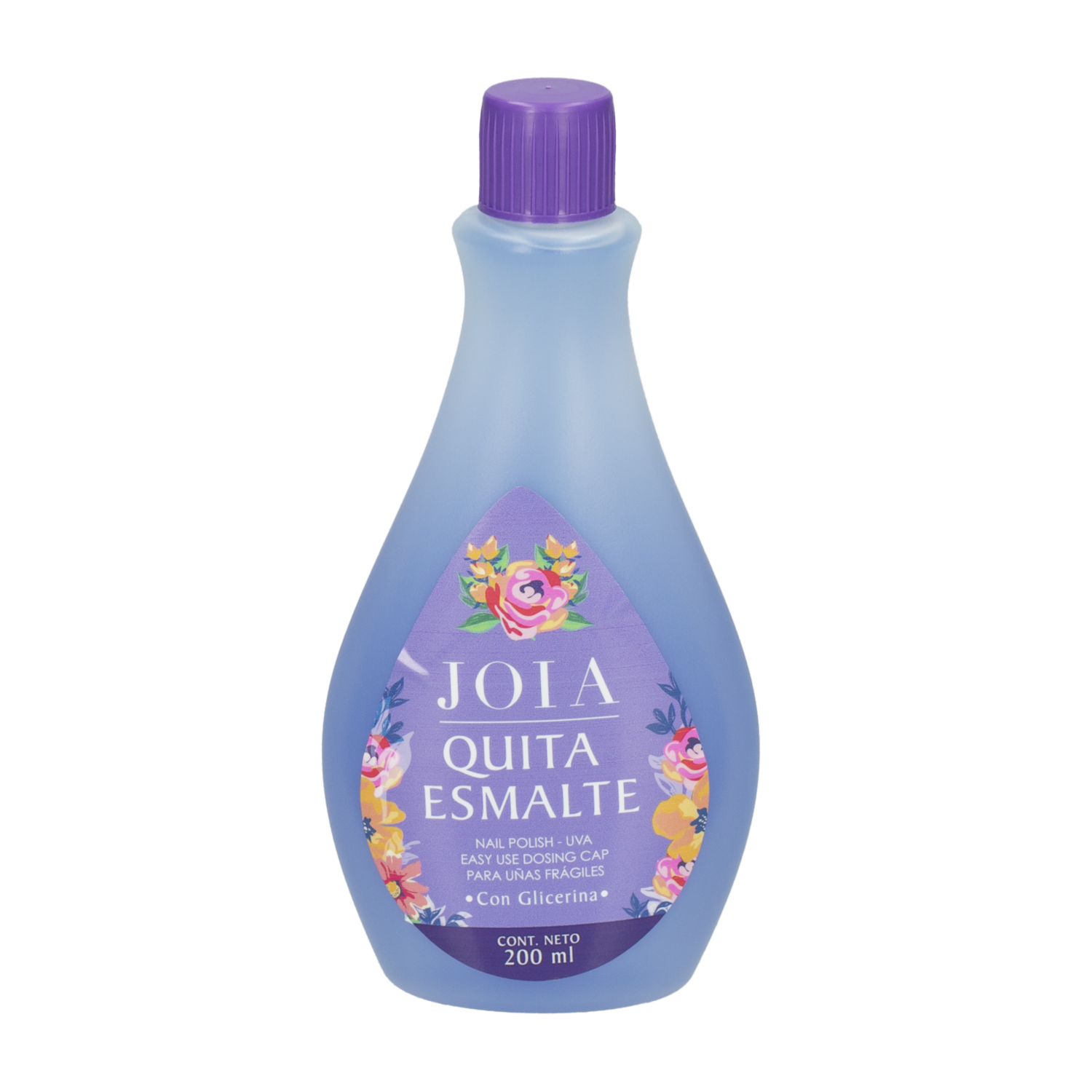 - El quitaesmalte morado JOIA de 200 ml elimina rápidamente el esmalte de uñas, dejando tus uñas limpias y listas para un nuevo color. Su fórmula efectiva es suave con las uñas, proporcionando una limpieza rápida y sin dañarlas. Ideal para un uso diario, con una presentación conveniente y económica