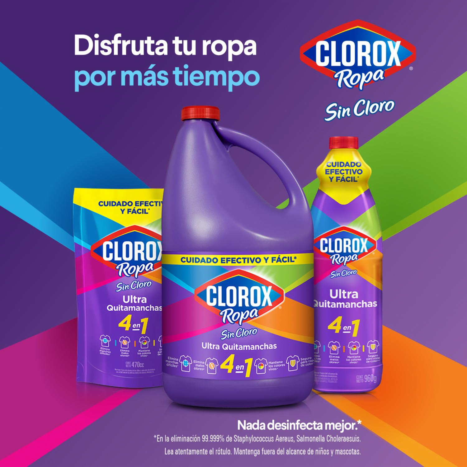 - Ofrece 5 veces más beneficios: disuelve las manchas, penetra las manchas, remueve la suciedad, permite colores vivos y tiene el poder del oxígeno. Es seguro para las prendas de color y ropa blanca ya que no contiene cloro. Remueve manchas difíciles como las de vino, tinta, salsa de tomate y café