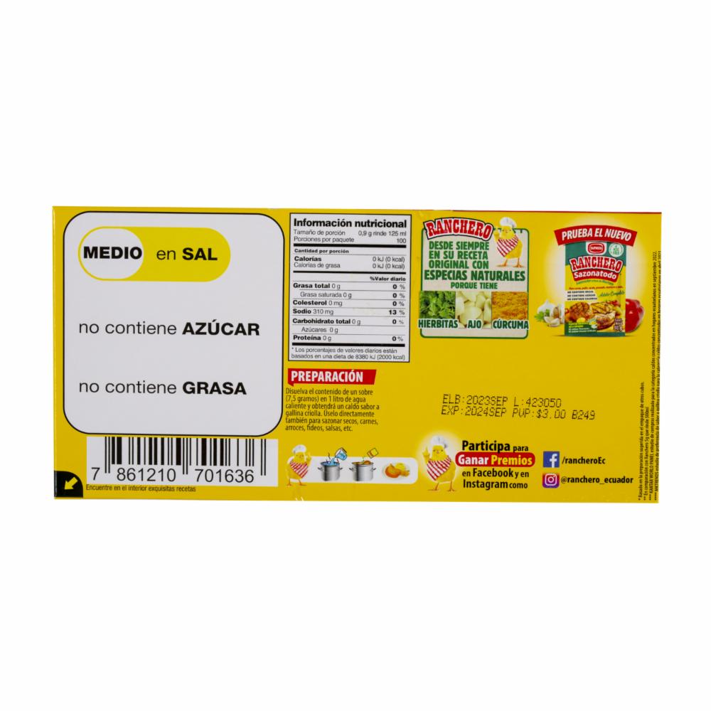 • El caldo de gallina en polvo Ranchero, en su presentación de 90 gramos, es un condimento concentrado que se utiliza comúnmente para realzar el sabor de diversas preparaciones culinarias