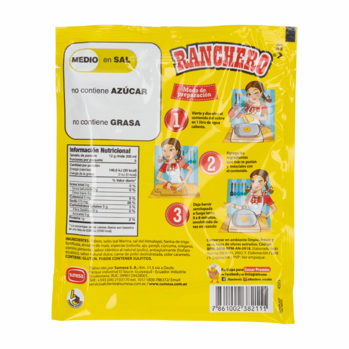 Sopa De Pollo Con Fideos RANCHERO Sobre