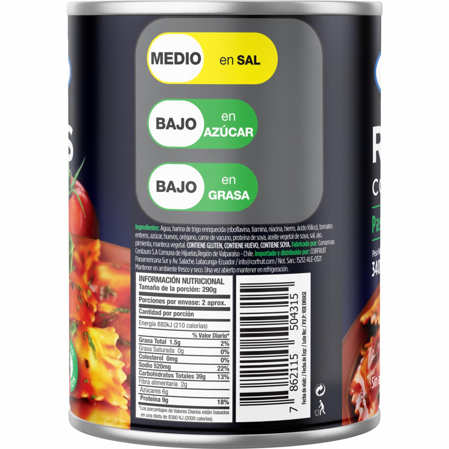 Ravioles Con Salsa Pasta Rellena Sin Conservantes CORFRUIT 340 G