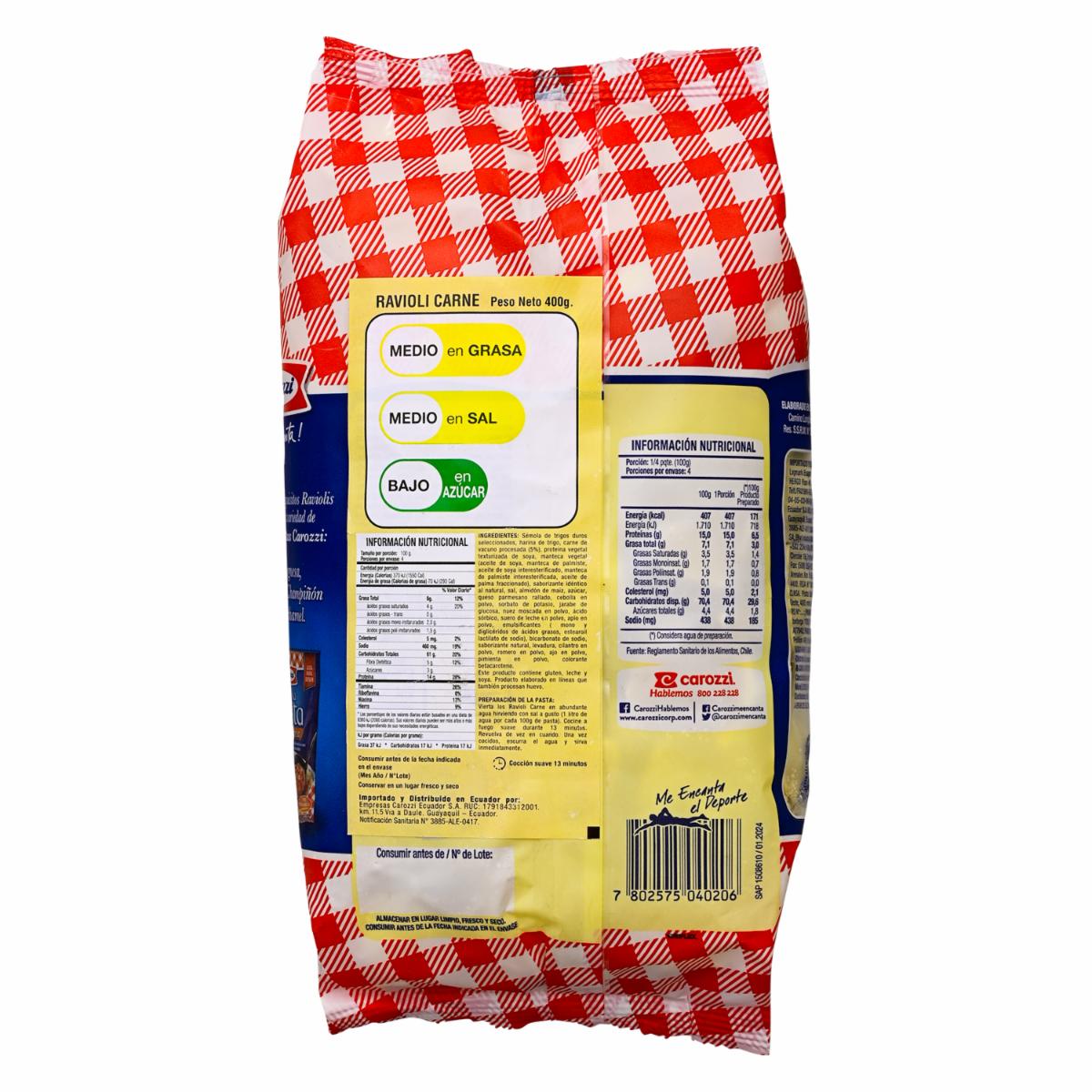 consultando preciosRavioli De Carne CAROZZI 400 g – CAROZZI. Disponible en nuestros locales. Precio y stock pueden variar según la tienda.