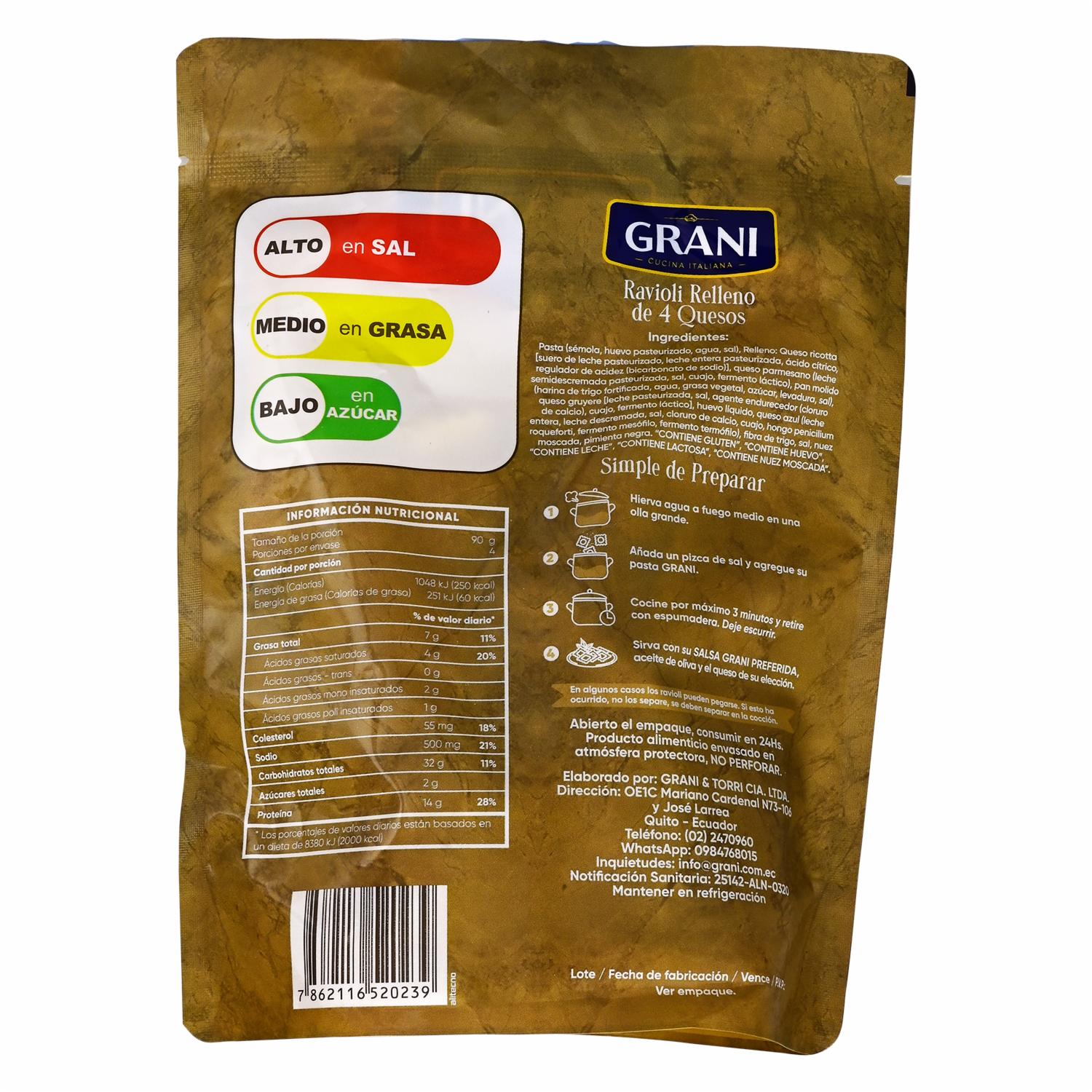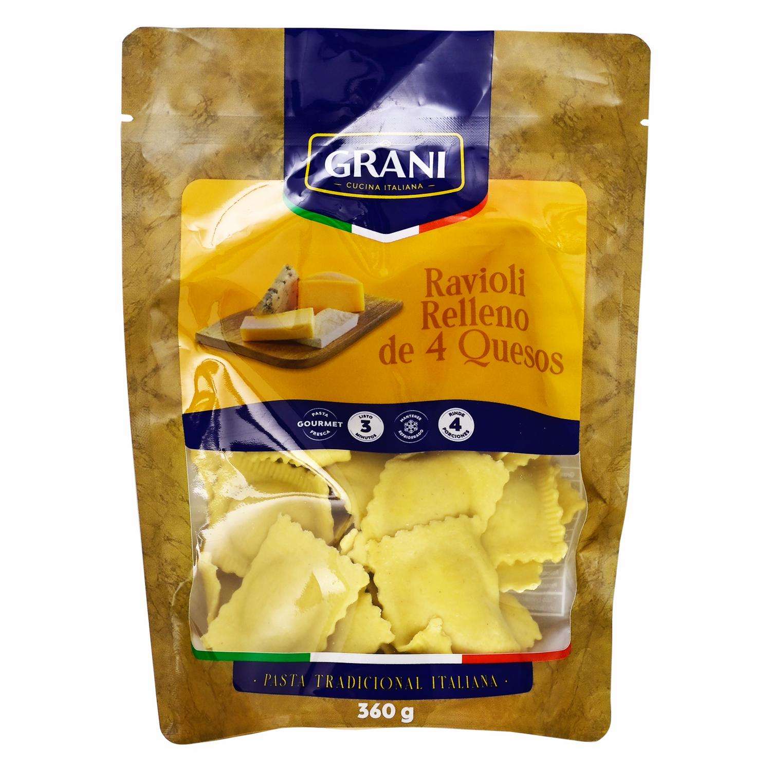 Raviolis 4 Quesos GRANI 360g – GRANI. Disponible en nuestros locales. Precio y stock pueden variar según la tienda.