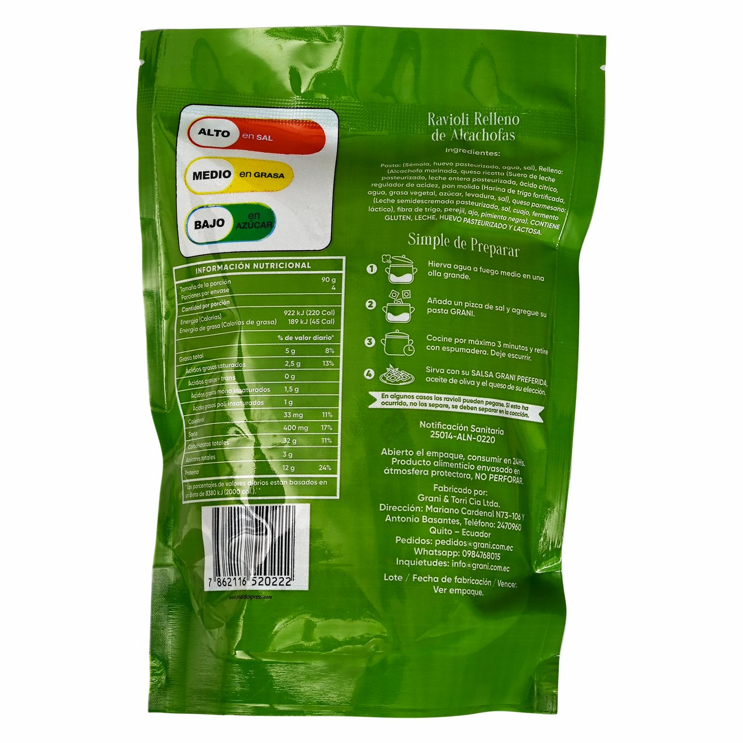 consultando preciosRaviolis Alcachofa GRANI 360g – GRANI. Disponible en nuestros locales. Precio y stock pueden variar según la tienda.