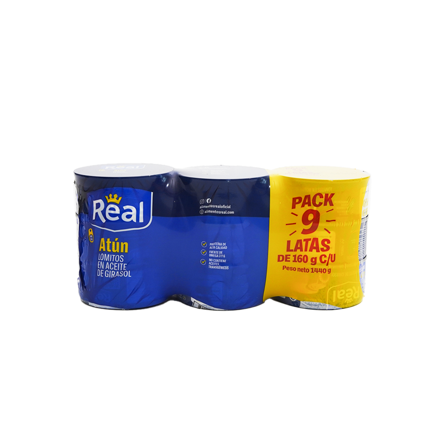 Atún En Aceite de Girasol REAL 9 X 160 G – REAL. Disponible en nuestros locales. Precio y stock pueden variar según la tienda.