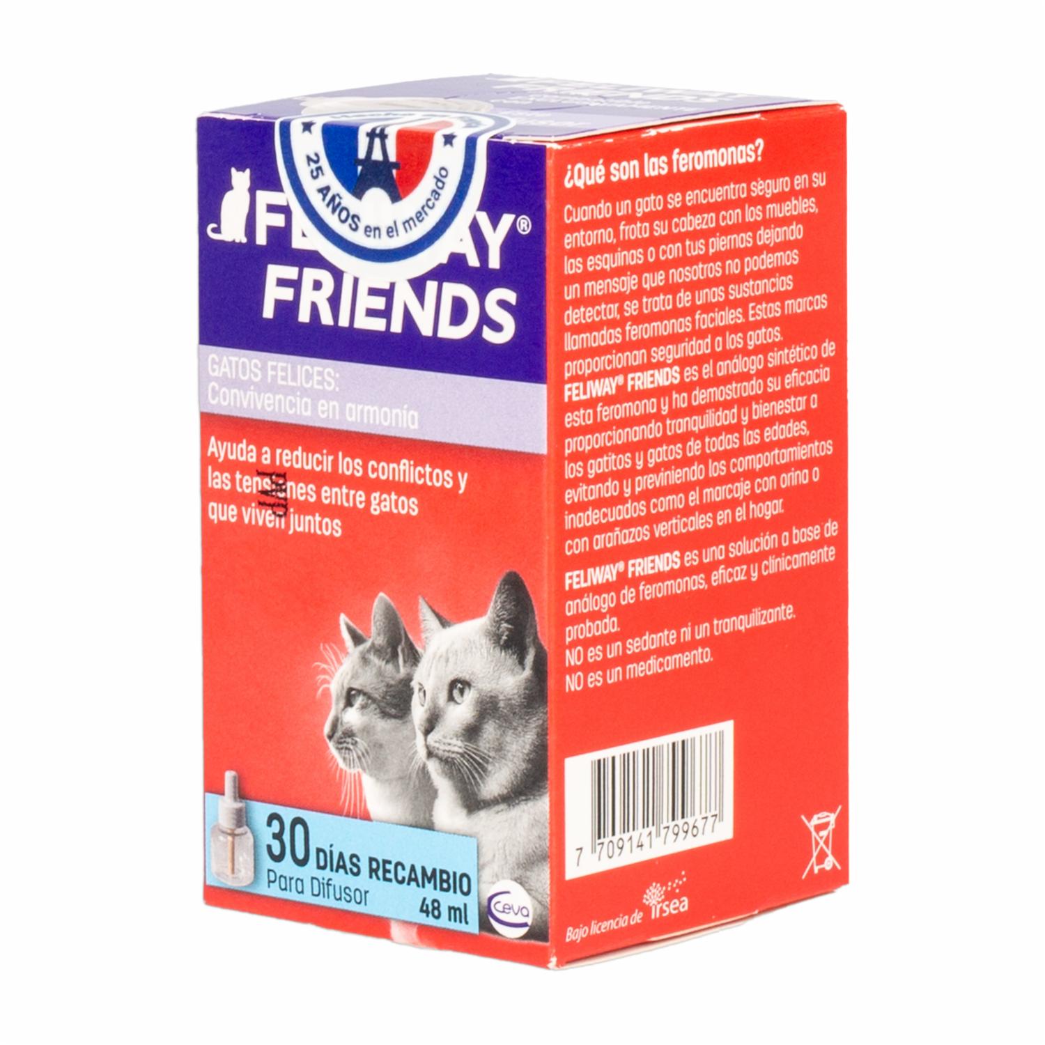- El recambio de difusor relajante para gatos CEVA de 48 ml es una opción conveniente para reabastecer el difusor original cuando se ha agotado el contenido. Este recambio contiene la misma fórmula de feromonas felinas sintéticas que imitan las feromonas naturales de los gatos, ayudando a calmar y reducir el estrés en los felinos en entornos interiores