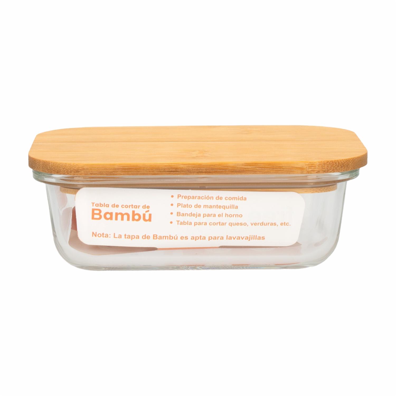 • Características: - Vidrio resistente de alta calidad - Capacidad de 370 ml - Tapa de bambú con cierre de silicona - Apto para microondas y congelador (sin la tapa) Incluye: - Refractario de 370 ml