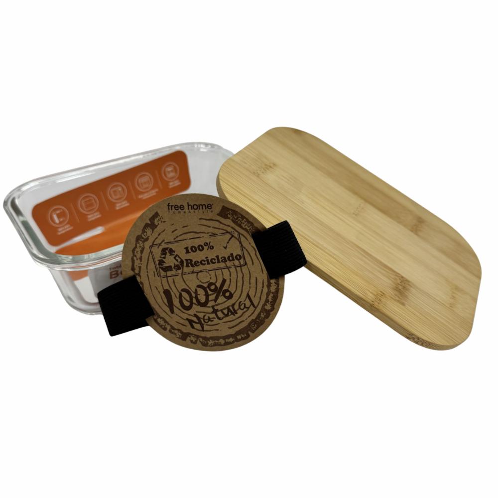 Repostero Refractario Con Tapa Bamboo FREE HOME 650 Ml