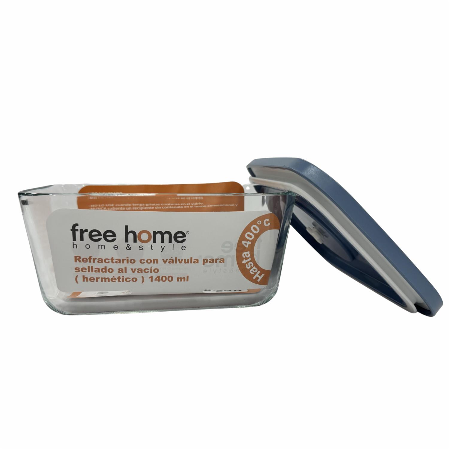 • Refractario con válvula y fecha celeste FREE HOME pensado para almacenar porciones grandes con total seguridad