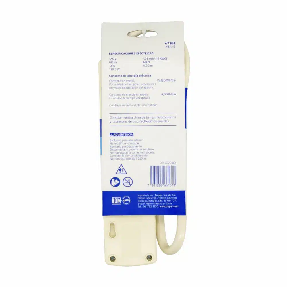 Regleta De 4 Tomas VOLTECK Unidad – VOLTECK. Disponible en nuestros locales. Precio y stock pueden variar según la tienda.