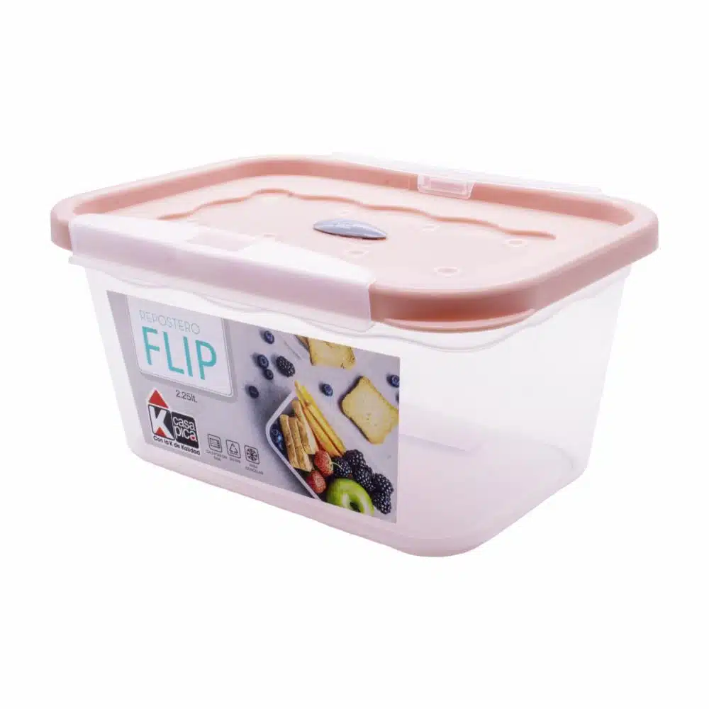 • Repostero Flip color rosado ideal para almacenar alimentos de forma práctica y segura